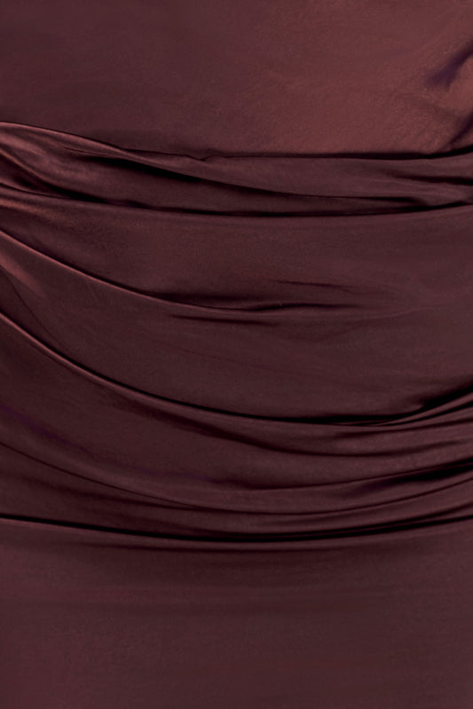 Dalia Off Shoulder Satin Maxi Dress - Dark Chocolate