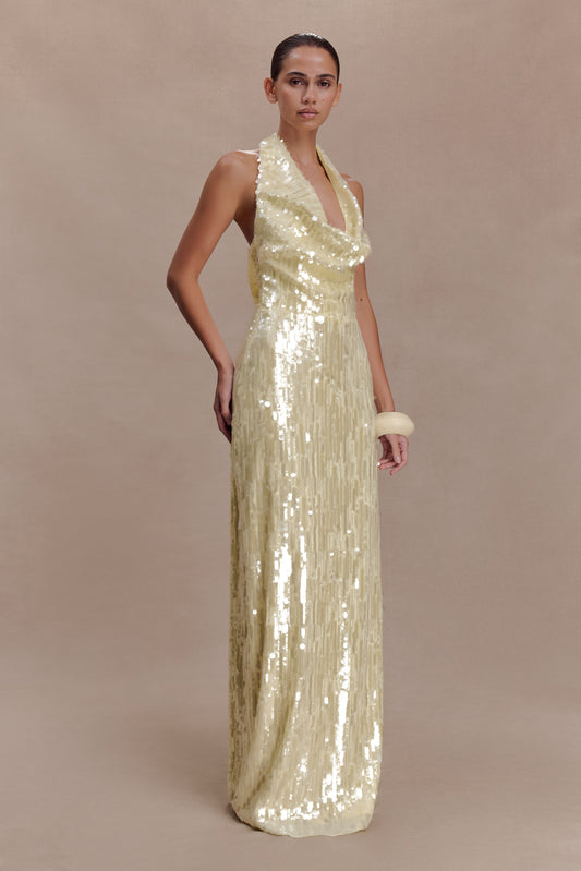 Gertrud Sequin Halter Maxi Dress - Lemon