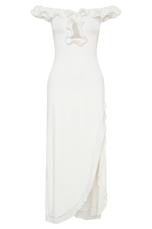 Allegra Off Shoulder Ruffle Midi Dress - Ivory