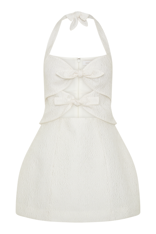 Ella Bow Detail Halter Mini Dress - White