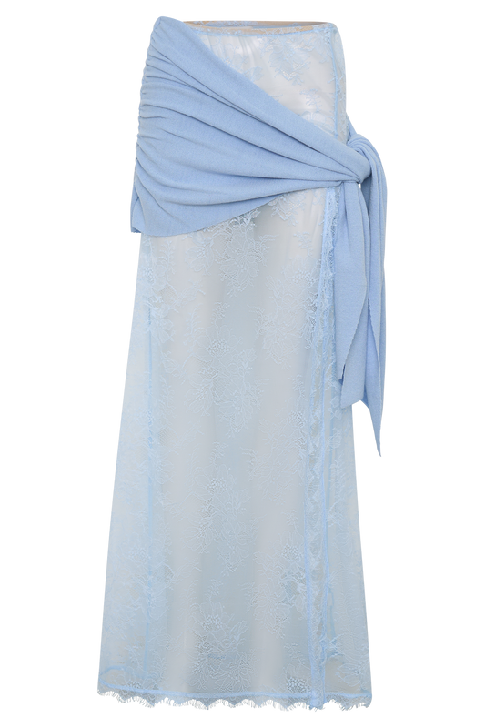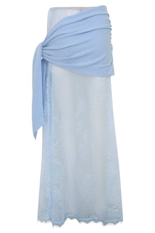 Lucy Lace And Knit Skirt - Cornflower Blue