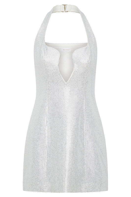 Raina Diamante Halter Mini Dress - White