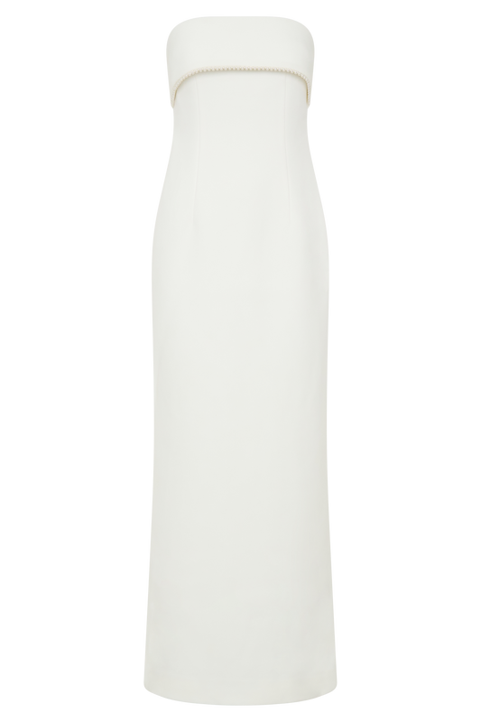 Sloane Strapless Maxi Dress With Pearls - White