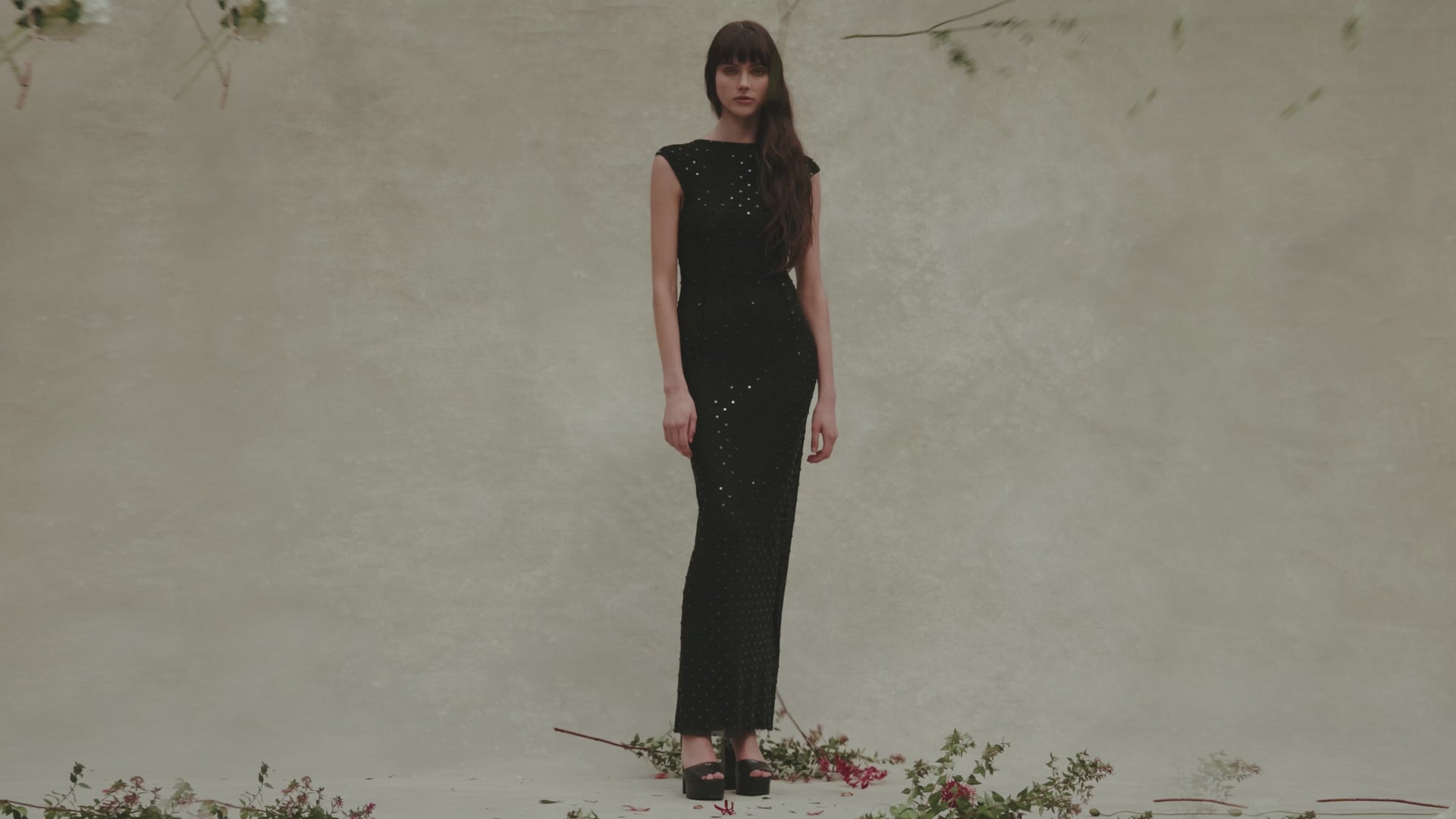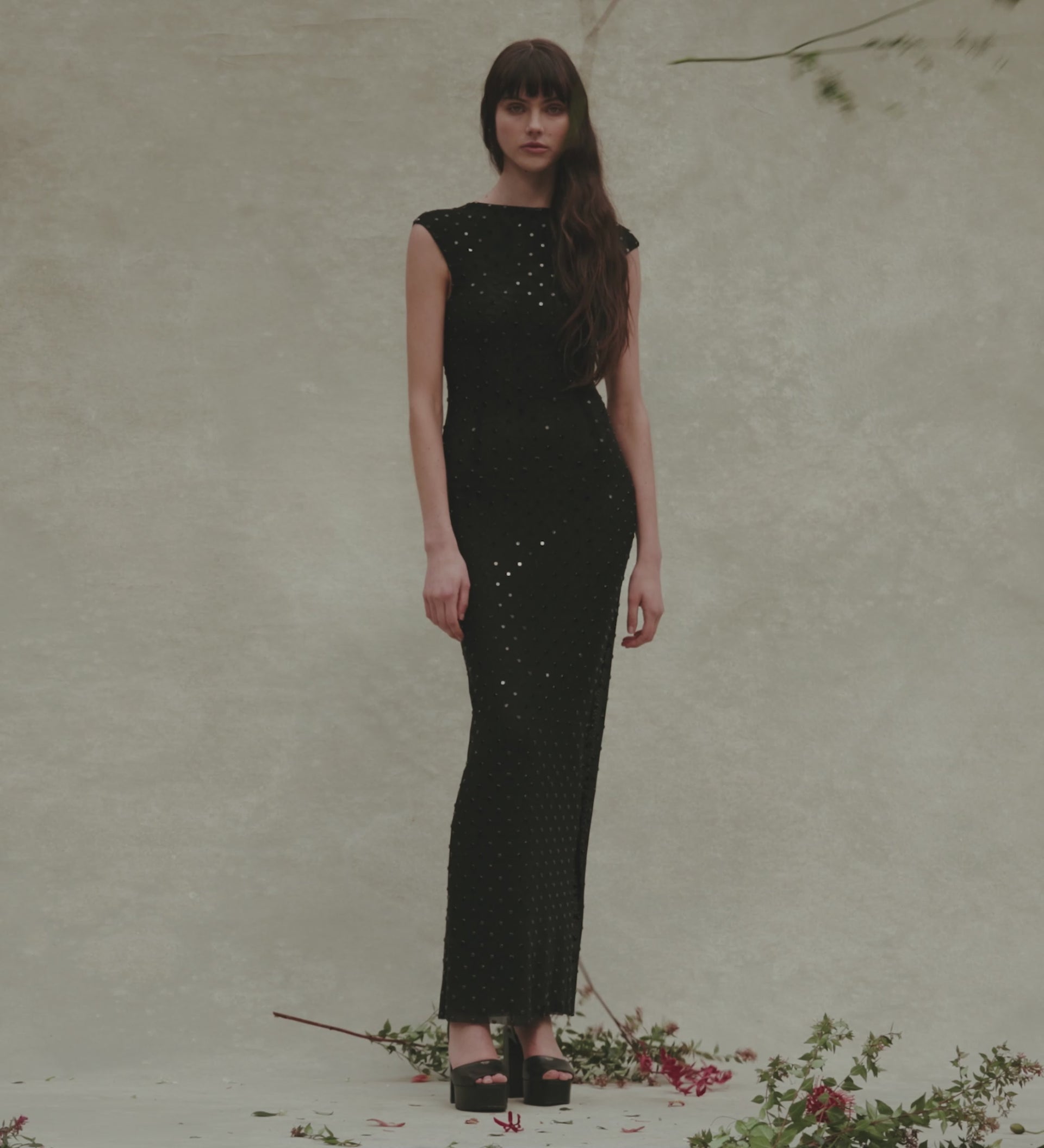 Acadia Diamante Long Sleeve Maxi Dress - Black