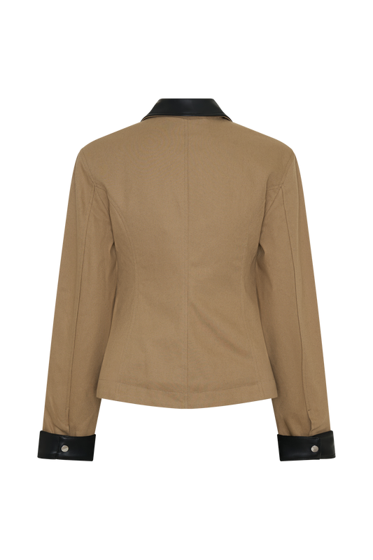 Faux Suede & Leather Collared Jacket - Tan