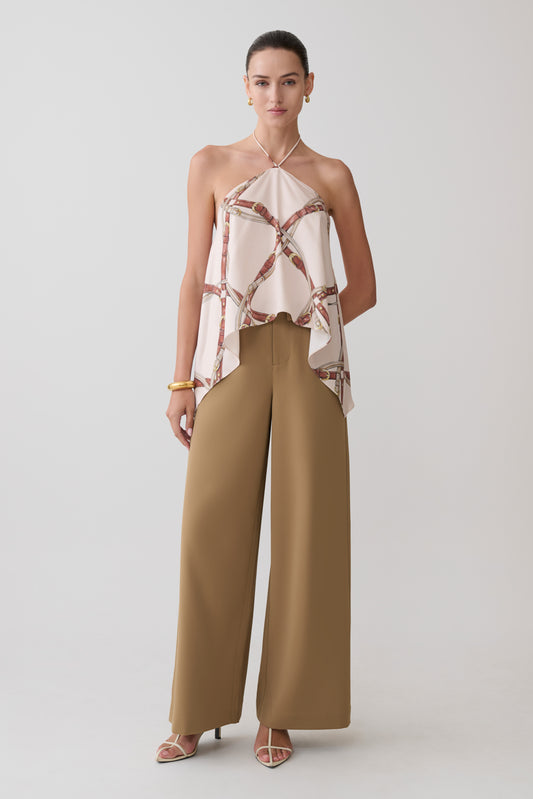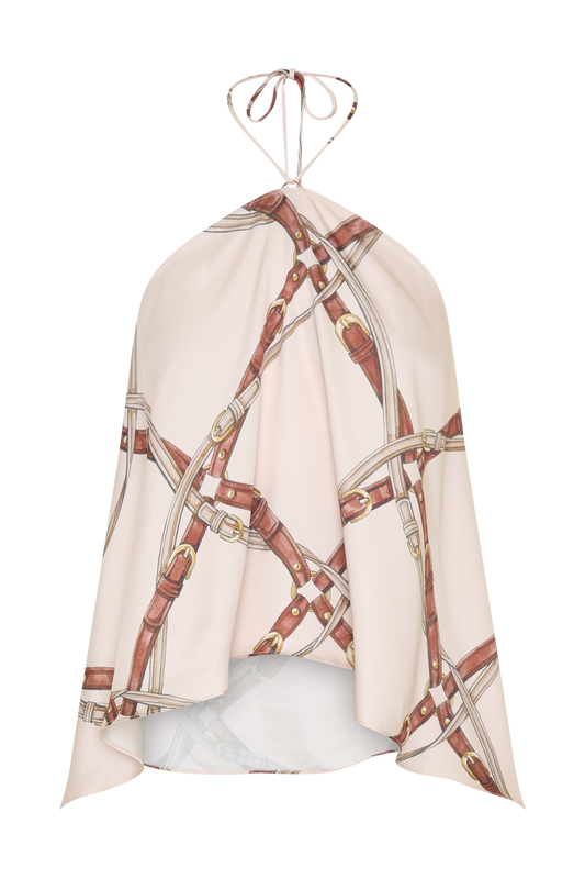 Adelaide Draped Satin Halter Top - Chain Print