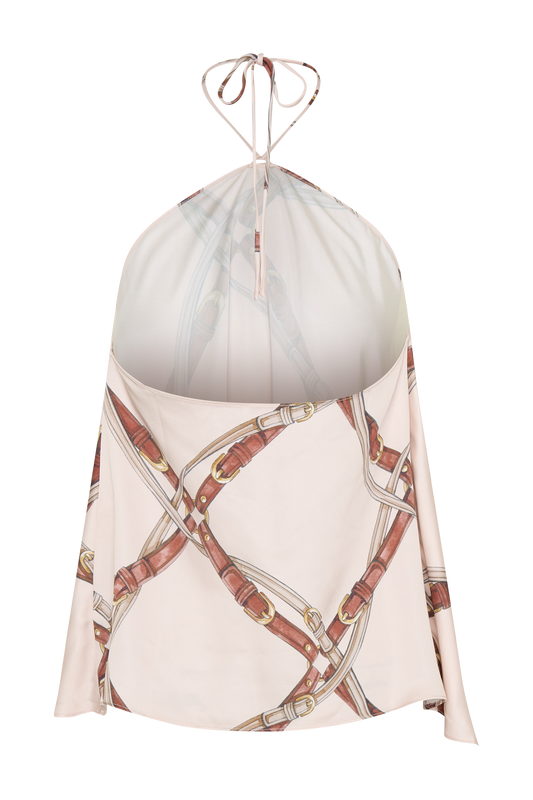 Draped Satin Halter Top - Chain Print
