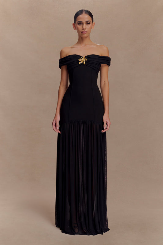 Regular price $1,725Unit price / perAsha Floral Mesh And Satin Maxi Dress - Black