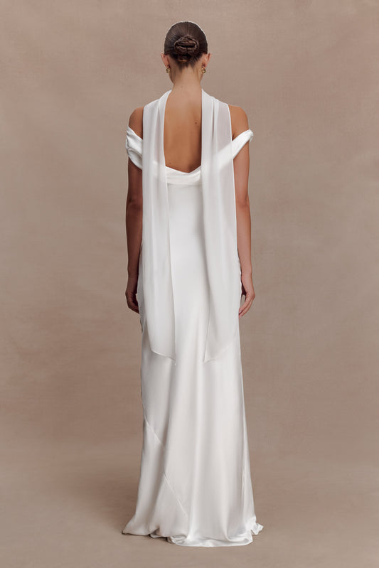 Juliet Slinky Maxi Dress With Scarf - White