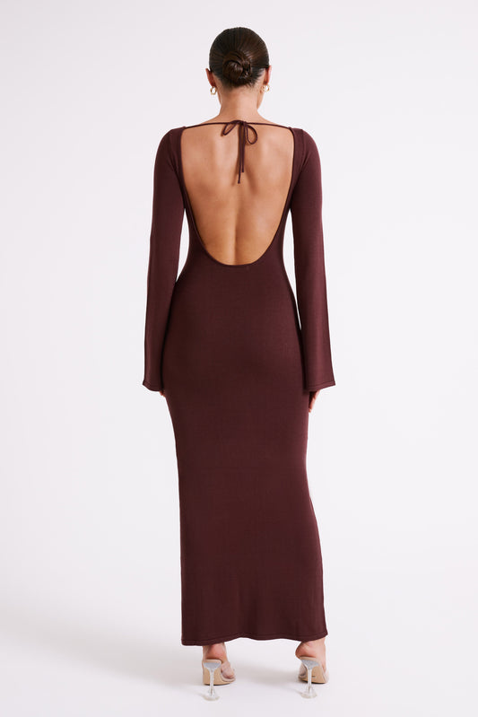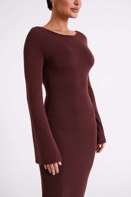 Marleigh Flare Sleeve Knit Maxi Dress - Dark Chocolate