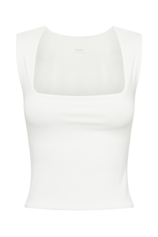 Aisling Ribbed Square Neck Sleeveless Top - Ivory