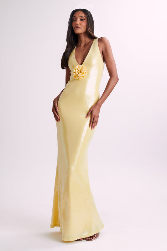 Olivette Strapless Chiffon Maxi Dress - Lemon Sherbet