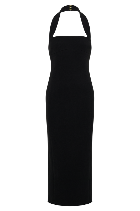 Patricia High Neck Satin Midi Dress - Black