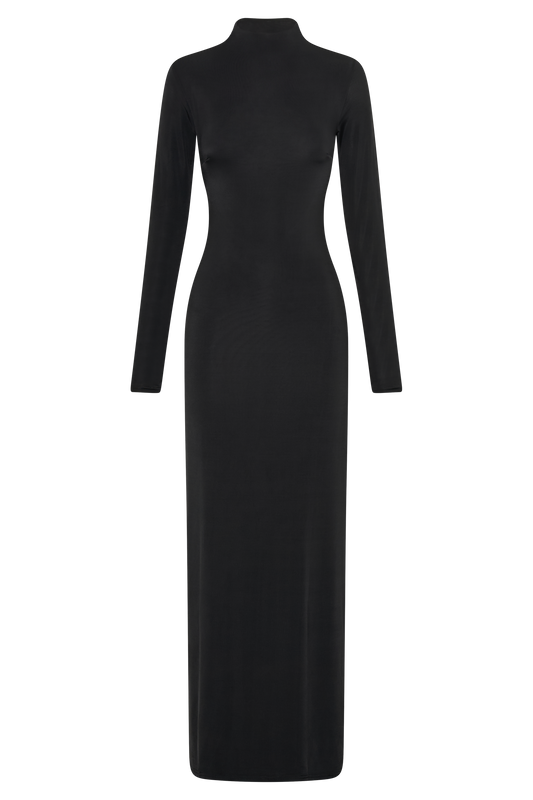 Long Sleeve Slinky Maxi Dress - Black