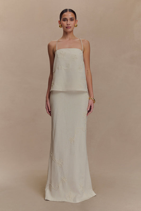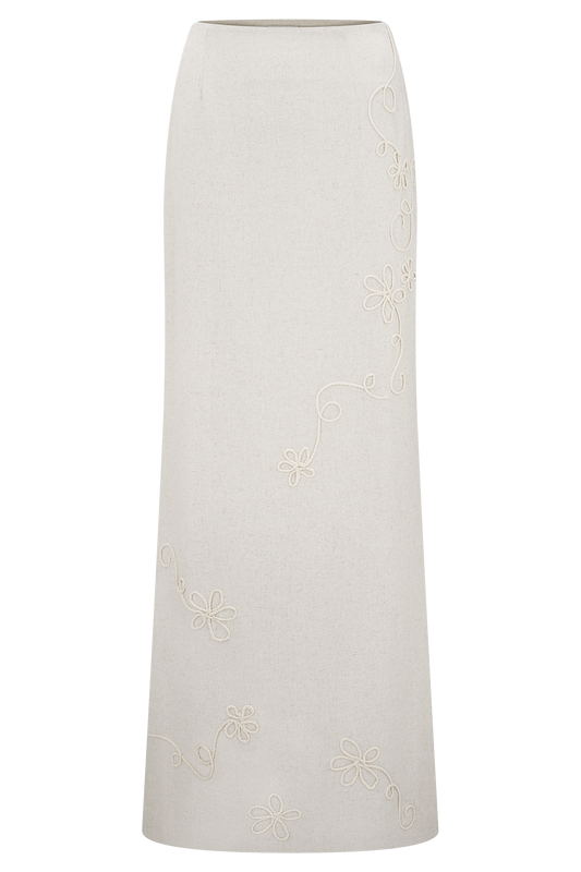Clarence Linen A-Line Maxi Skirt - White