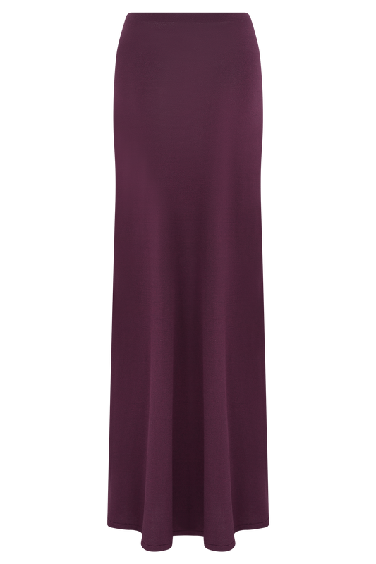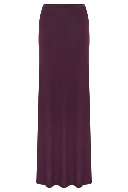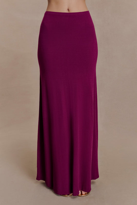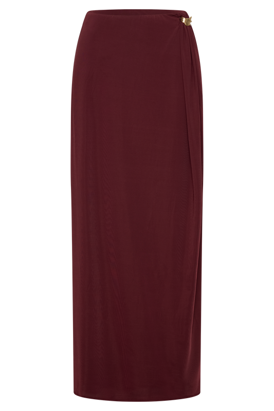 Erina Slinky Ruched Maxi Skirt With Hardware - Aubergine