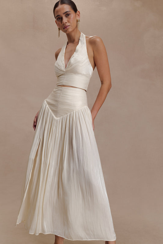 Noel Mirror Knit Midi Skirt - Beige