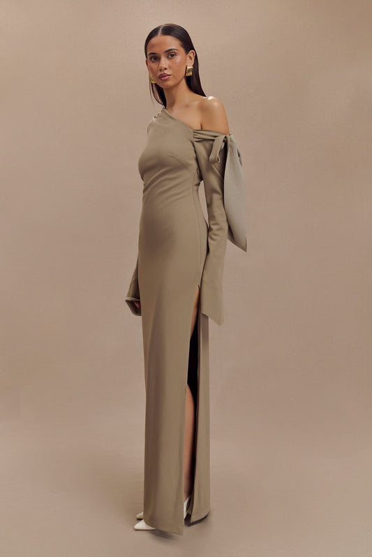 Serena Strapless Taffeta Maxi Dress - Bronze Taupe