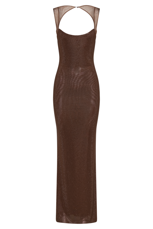 Jasmyn Hot Fix Maxi Dress With Mesh Back - Chocolate