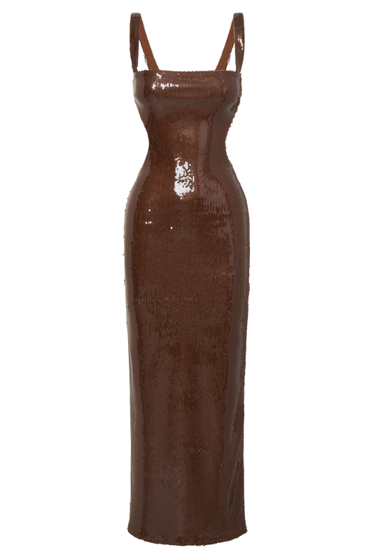 Adoria Sequin Cut Out Maxi Dress - Chocolate