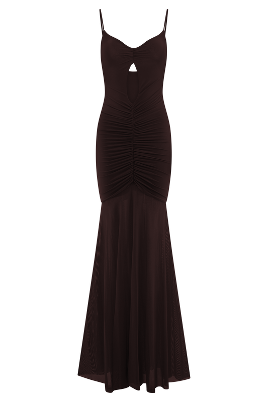 Regular price $189Unit price / perPreferred FibresAubree Crepe And Mesh Maxi Dress - Chocolate/Mocha