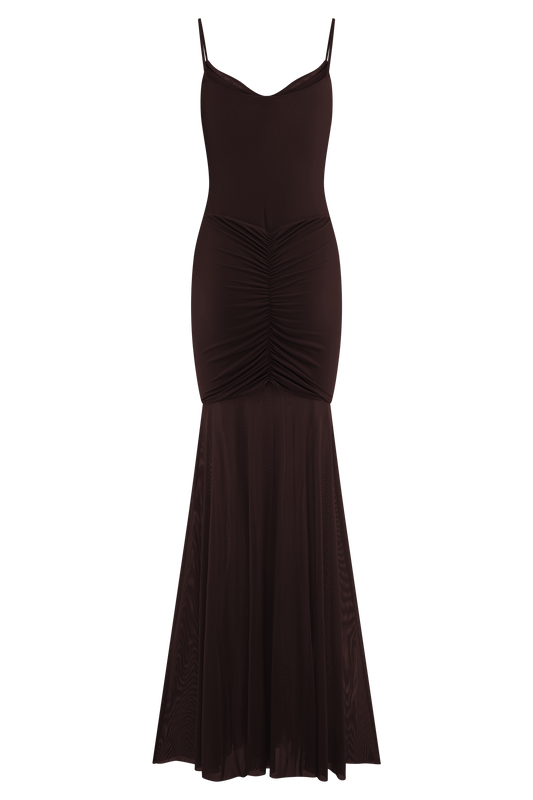 Aubree Crepe And Mesh Maxi Dress - Chocolate/Mocha