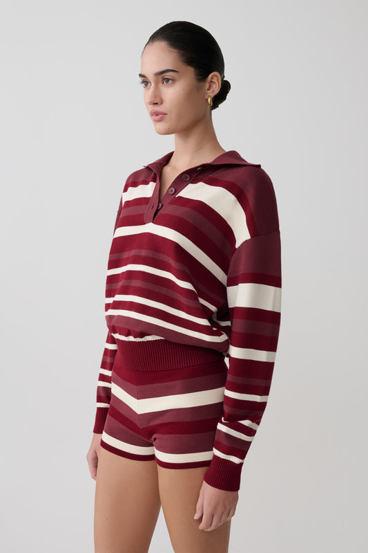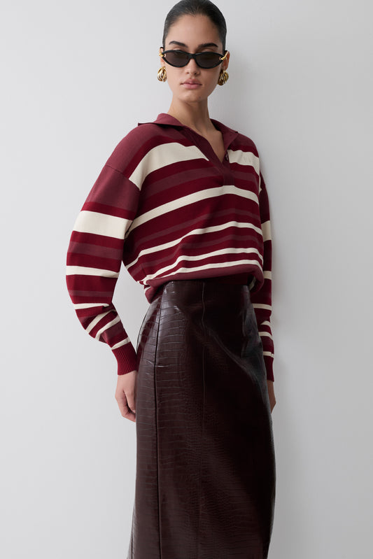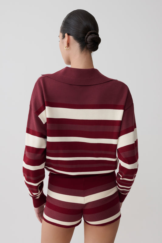 Philly Stripe Long Sleeve Knit Jumper - Burgundy/Cream