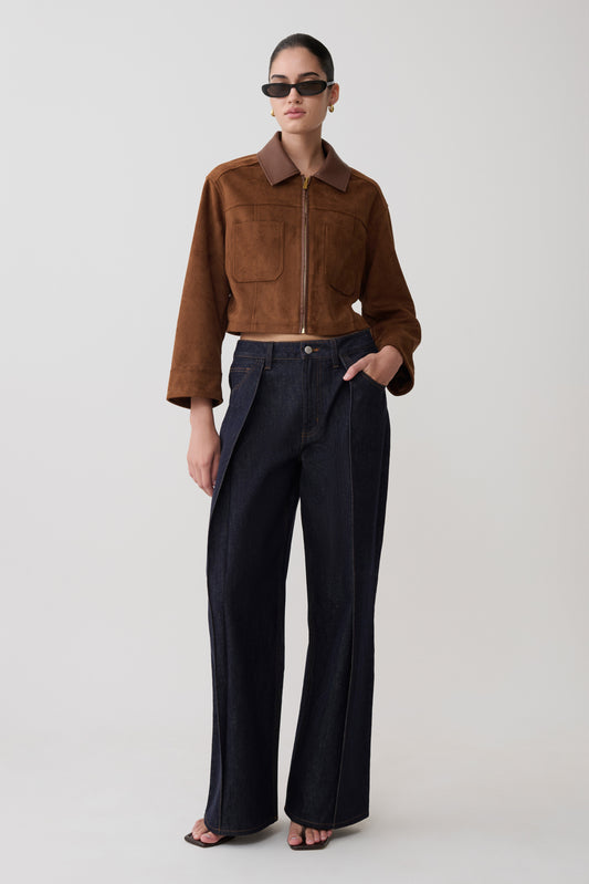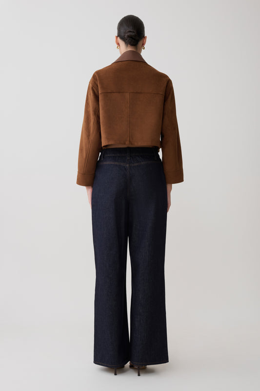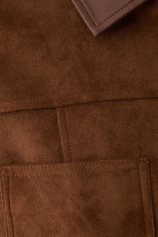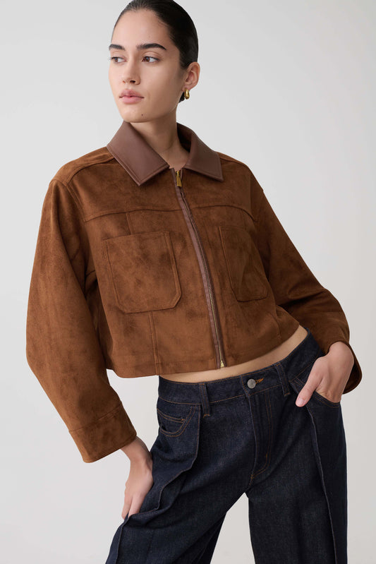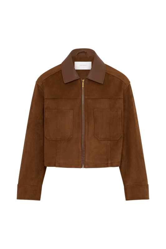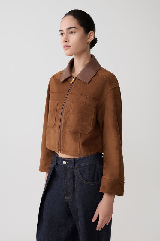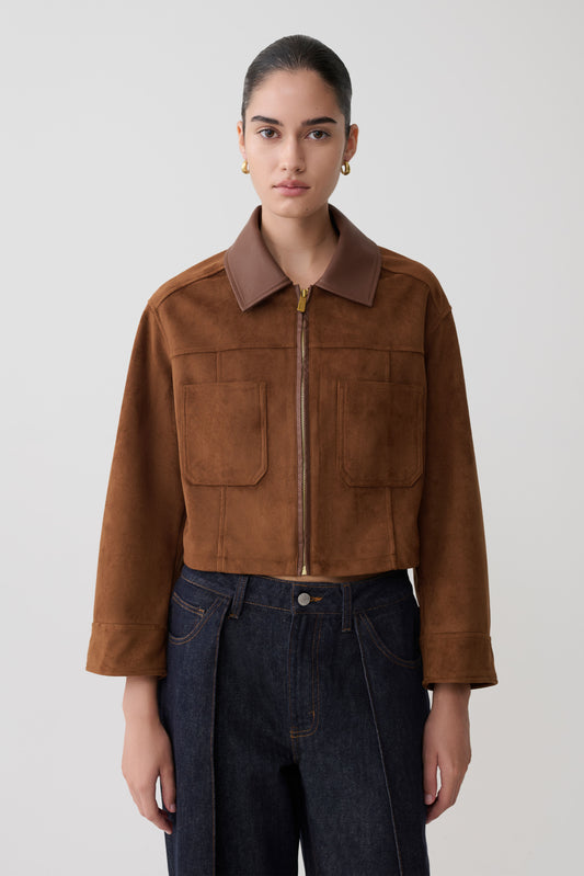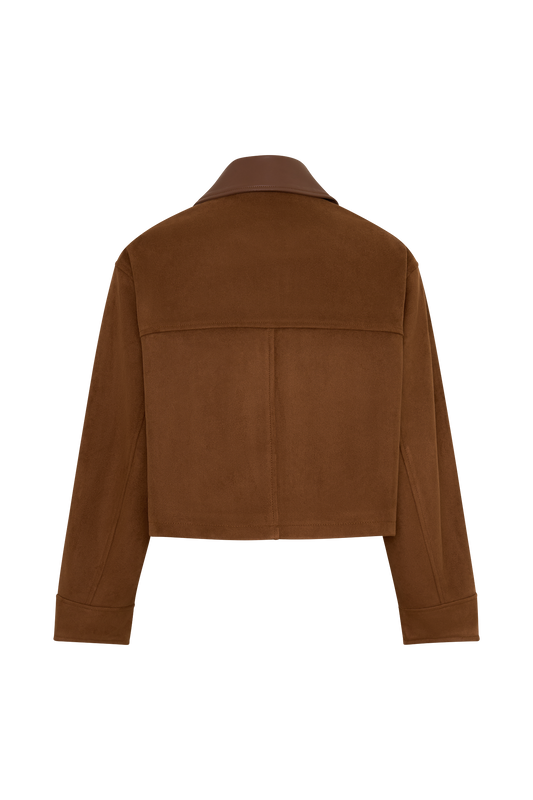 Remy Faux Suede & Leather Collared Jacket - Tan