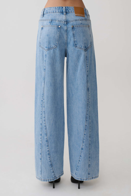 Mid Rise Wide Leg Denim Jeans - Classic Blue