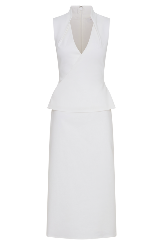 Regular price $219Unit price / per20% OFF AT CARTCecilie Cut Out Shirt Midi Dress - White