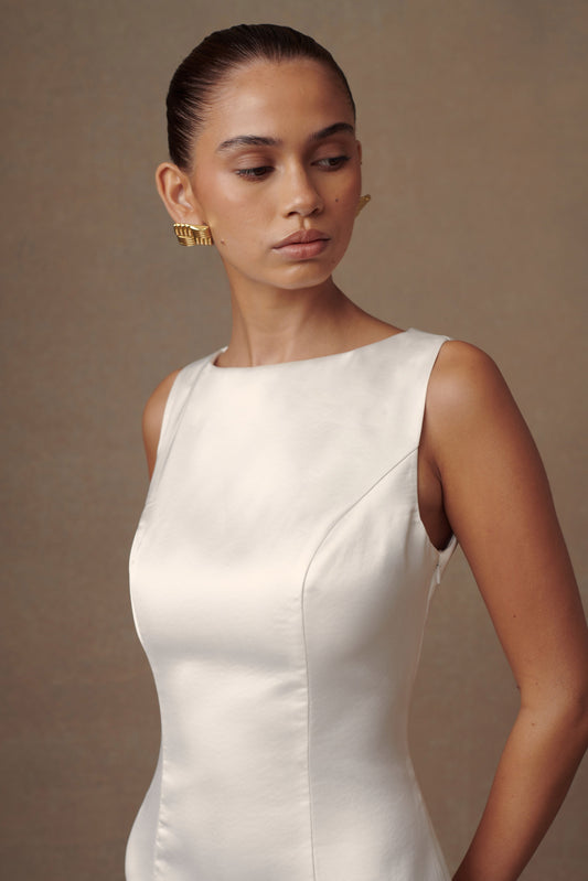 Audrine Suiting Sleeveless Midi Dress - Ivory