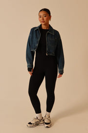 Fallon Cropped Denim Jacket - Indigo Blue