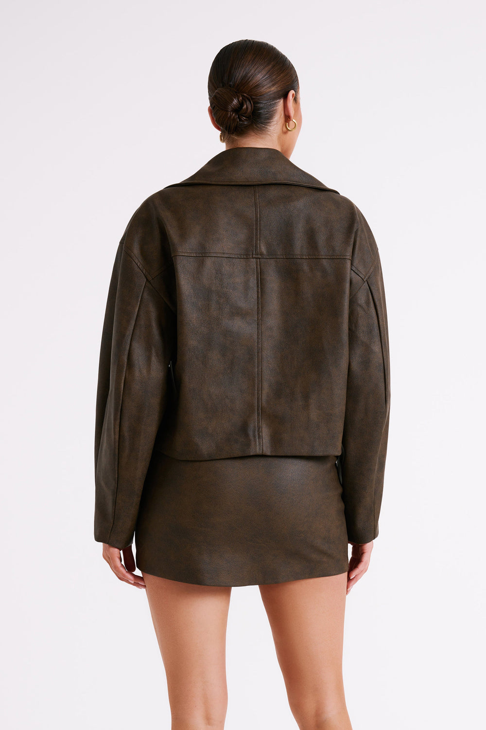 Faux Leather Bomber Jacket - Dark Chocolate