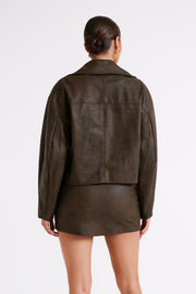 Curtis Faux Leather Bomber Jacket - Dark Chocolate
