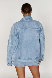 Olandria Oversized Jacket Top - Washed Indigo Blue
