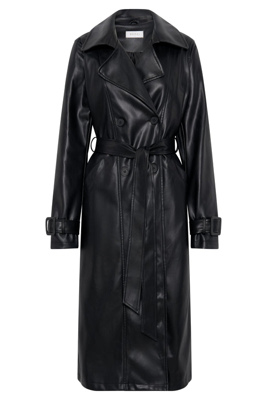 Tarah Faux Leather Trench Coat - Black