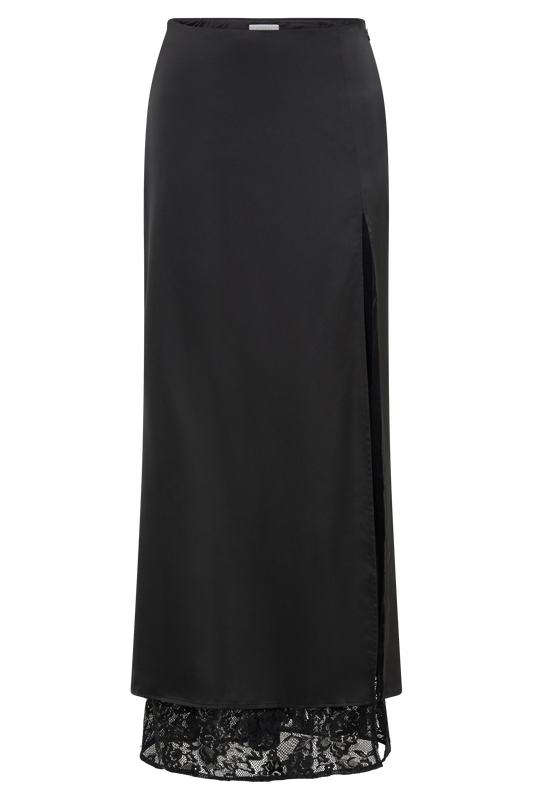 Mia Satin Lace Midi Skirt - Black
