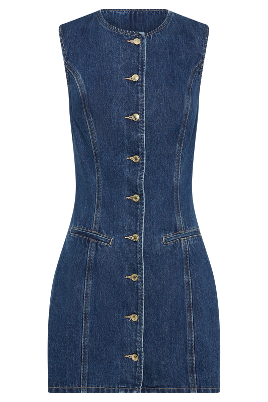 Merlyn Denim Cotton Mini Dress - Indigo Blue