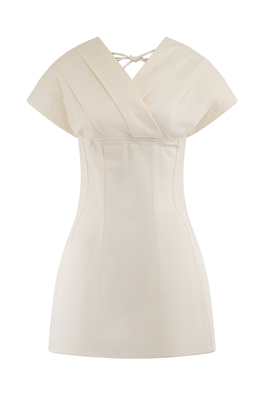 Regular price $159Unit price / per20% OFF AT CARTEbony Embroidered Denim Mini Dress - Cream