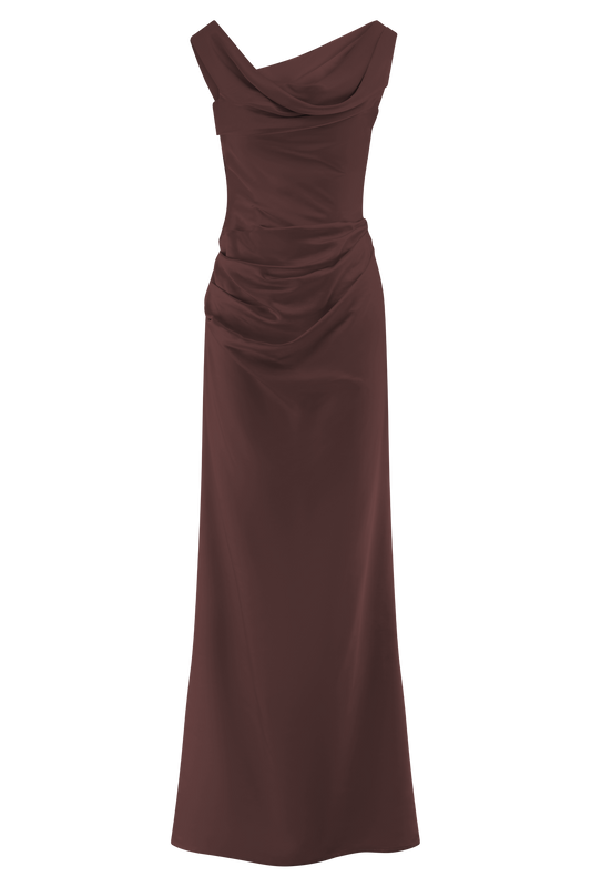 Serena Strapless Taffeta Maxi Dress - Bronze Taupe