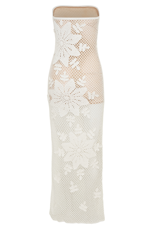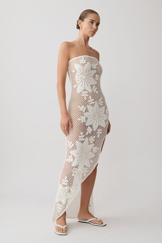 Mandie Hand Crochet Asymmetrical Maxi Dress - White