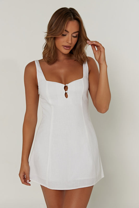 Tandie Linen Flare Mini Dress - White