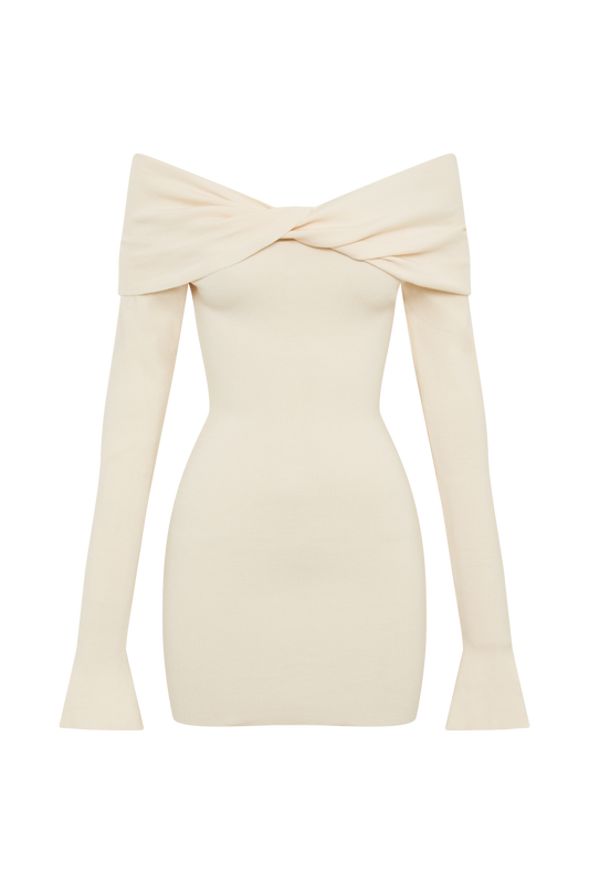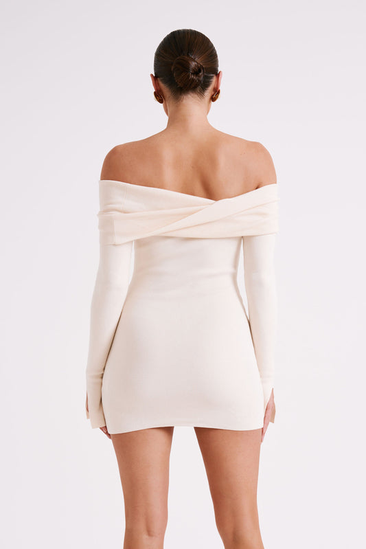 Regular price$99-49% Off Sale price $50Unit price / perClover Off Shoulder Knit Mini Dress - Cream