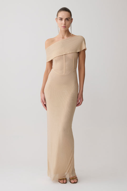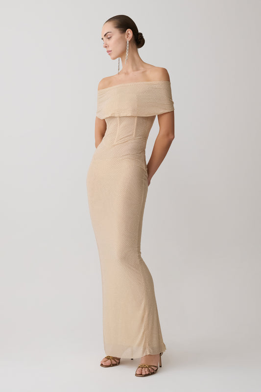 Serena Strapless Taffeta Maxi Dress - Bronze Taupe