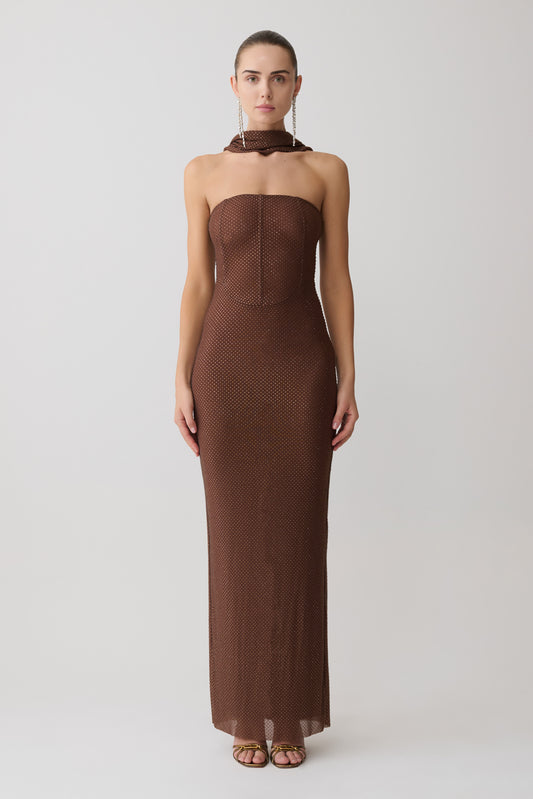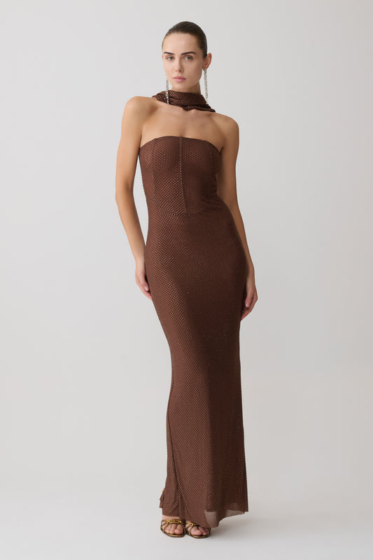 Oria Chiffon Maxi Dress - Cacao Brown