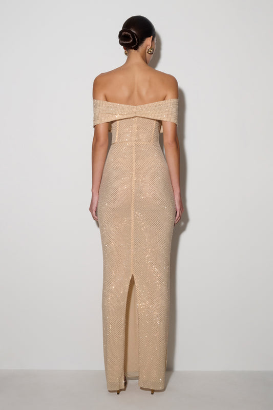 Hien Sequin Halter Maxi Dress - Black/Ivory