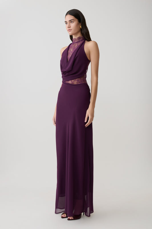 Arra Chiffon And Lace Halter Maxi Dress - Plum