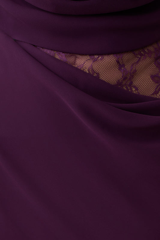 Chiffon And Lace Halter Maxi Dress - Plum