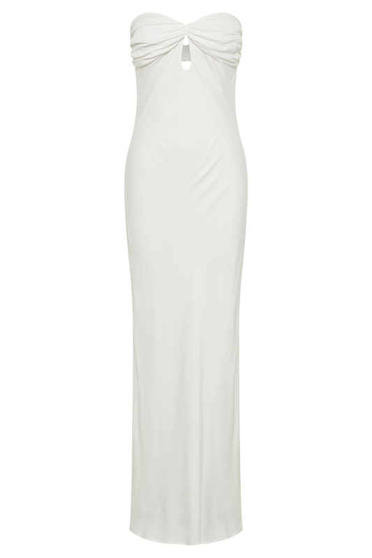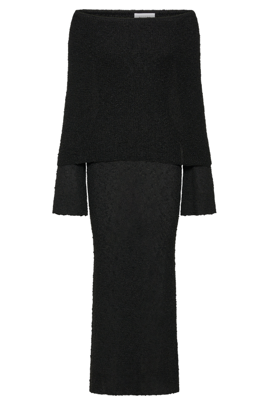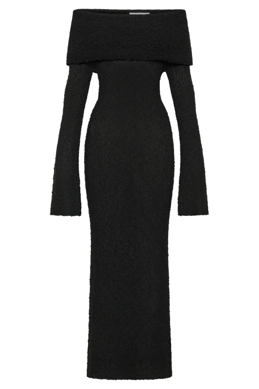 Off Shoulder Boucle Maxi Dress - Wheat