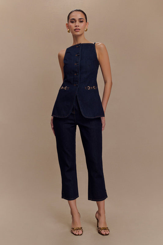 Caroline Denim Halter Midi Dress - Indigo Blue